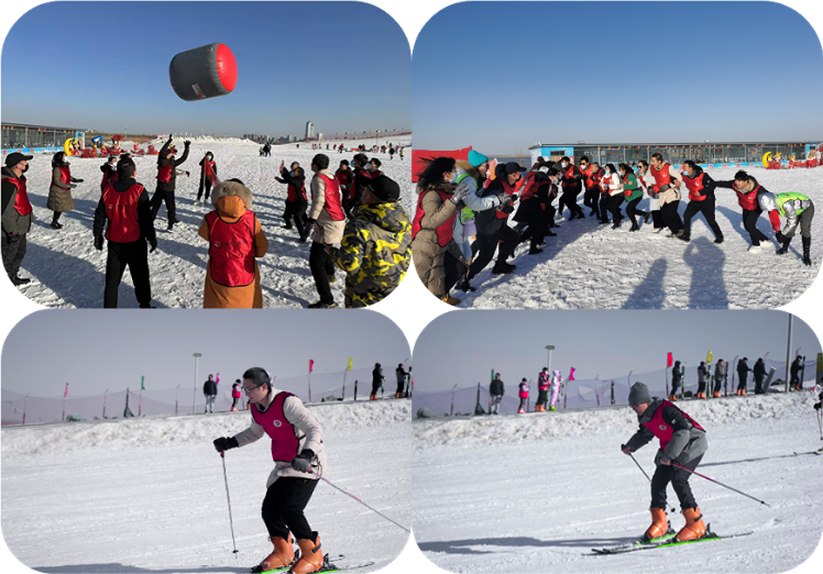 下午13:00到達(dá)滑雪場后,拉開了今天“雪場比武”的帷幕。通過分組,開展了一系列的破冰活動,冰天雪地和現(xiàn)場火熱的氛圍形成了鮮明對比。