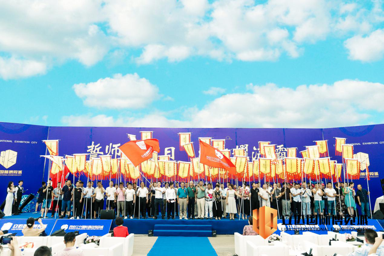 在掌聲與祝賀聲中,江寧實(shí)業(yè)集團(tuán)董事長(zhǎng)王金水先生、西安江寧國(guó)際酒店用品城運(yùn)營(yíng)總監(jiān)熊顯華先生攜眾商戶代表分別登臺(tái)誓師宣言,保證為江寧國(guó)際酒店用品城10月1日如期開業(yè)全力以赴。