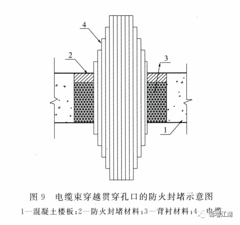 3 電纜之間的縫隙應(yīng)采用膨脹性的防火封堵材料封堵。
